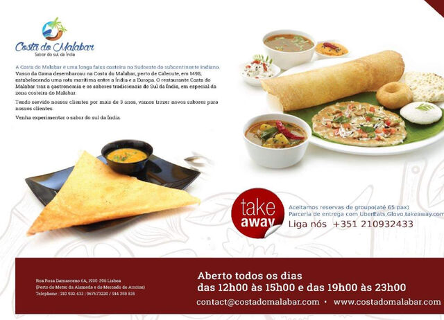 At Restaurant Costa do Malabar we are trying to bring the traditional food and flavors of South India, especially from the coastal area of Malabar, to you in Lisbon. This is the first and only unique South Indian restaurant in Lisbon. Try our food and enjoy the aromatic flavors of Malabar.